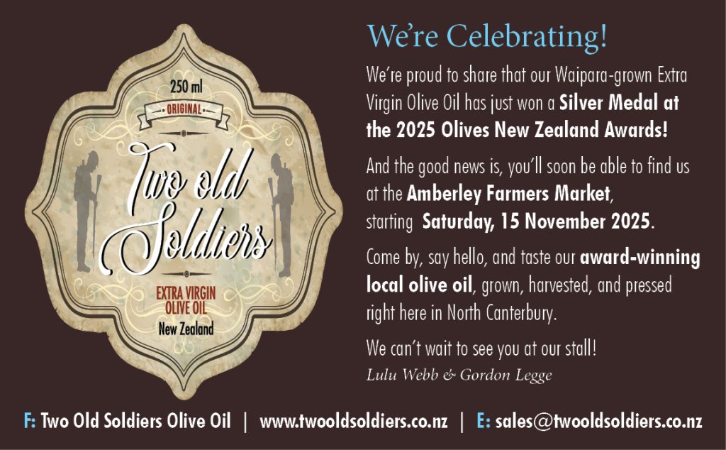 Our Two old Soldiers olive grove is situated in the stunning region of Waipara, North Canterbury, New Zealand.